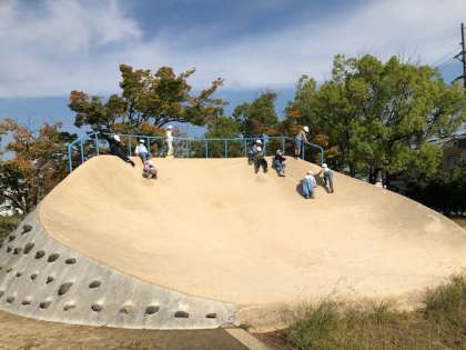 まちたんけんのと中に,りきゅうあと公園に行きました。
