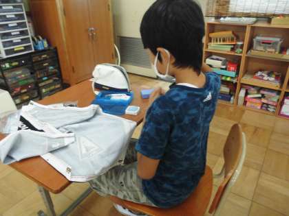しっかり縫うところに注目して,集中して取り組むことができています。