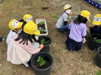 さつまいもはしゅうかくしましたが、新しく秋からそだてるしょくぶつをうえました。