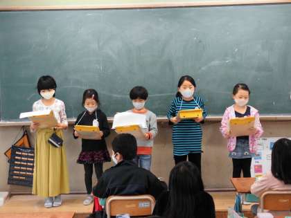 大きな声で丁寧にインタビューする練習をしあい,お互いの良いところを褒めていました。本番のインタビューが楽しみです。