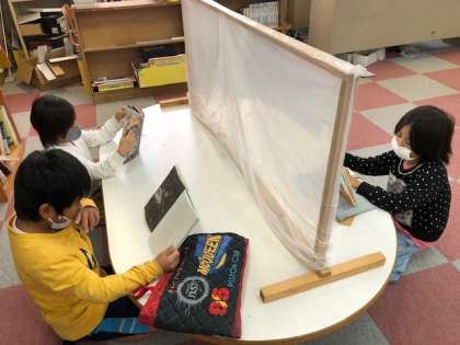 2年生では,絵本だけではなく文字数の多い本にもちょうせんしています。