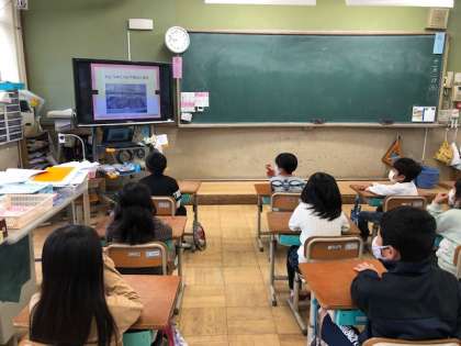 むかしのしゃしんを見ながら,下鳥羽小学校のれきしをふりかえりました。