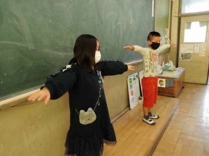 ドレミ体操を,とても上手な子どもに前に出てきたもらって,やってもらいました。