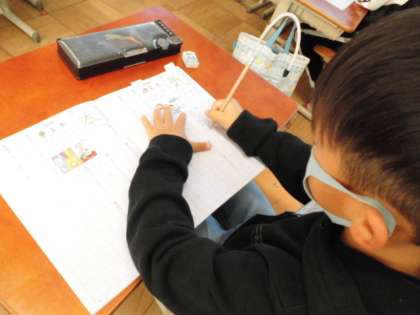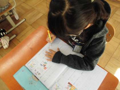 みぎしたの 上にはねあげる ところが むずかしくて,なんかいも かきなおしながら,ていねいに かいていました。