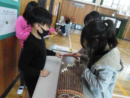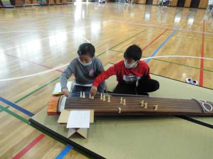お琴体験では,楽器に触れる以外にも,お琴の歴史や,様々な曲を聴いたり,楽譜を読んだりして,知識を深めることができました。
