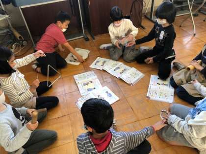 トライアングルやすず,クラベスなどの楽きを鳴らしてみました。
