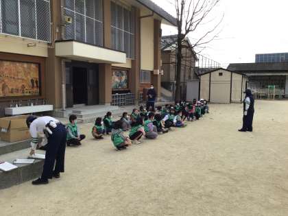 今日は,伏見警察の方々や検定員の方々にお越しいただき,「自転車安全教室」が行われています。4年生は事前に交通ルールに関する筆記テストや学習を進めています。