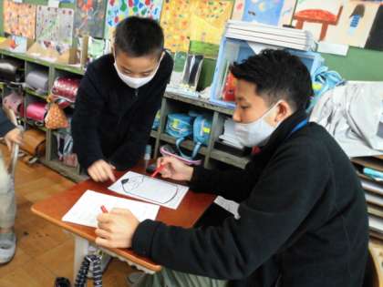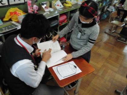 算数のノートを2人の先生に見てもらい,検定を受けました。