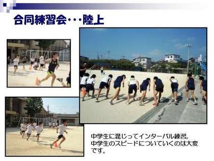 16日(土),伏見中学校陸上部の皆さんが,本校の土曜クラブ陸上の練習に参加され,合同練習会が行われました。揃いのTシャツでのインターバル練習。ユニフォームに着替えてのタイムトライアル。本校の児童も一緒に走ります。しかし,中学生のスピードについていくのは大変です。伸びが違います。しかし,小学生にとって一緒に走ることに価値があります。中学生の走りを肌で感じ,限界まで走ったときの彼らの息づかいや姿。そして,ミーティングでの中学生の態度。全てが勉強です。