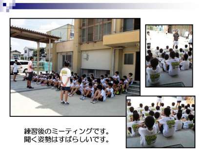 暑い中での合同練習。子どもたちにとって素晴らしい練習会でした。中学生の皆さんありがとうございました。