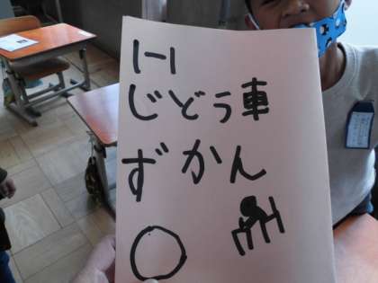 さいごには,じぶんでしらべた 車のせつめい文をかき,みんなにも 見てもらえるように,コピーをとってずかんにしあげました。