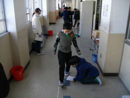 平均の学習の最後に自分の歩幅を調べてみました。10歩の長さを5回計測して平均を出しました。それを10で割ると1歩の歩幅が求められました。