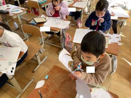 図工では,紙はんがにちょうせんしています。