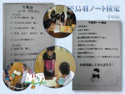 下鳥羽ノート検定で,合格の印をまだもらえなかった子どもたちは,再度,担任教員の指導を受けた後で,検定の受け直してきました。さすがに,最初の検定の時よりも丁寧に書けていたり,工夫してまとめていたりする子どもたちが多くなってきました。中には,すでに合格しているのに,検定基準表のプリントに書かれた内容を読んで,やり直しをし,「もう一度見てください。」とノートを持ってくる子どももいました。