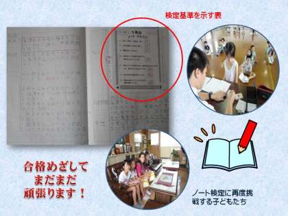 全校で取り組むことが如何に大切なことかを改めて思いました。まだ合格できなかった人も,夏休みの課題の一つにして,どうか頑張って下さい。夏休み中もノートを見てほしい人は,学校へ持って来て下さいね。学校にいる先生たちで見ますから。ノートの書き方やまとめ方をどんどん相談してくださいよ。