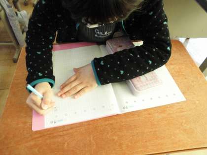 2年生の漢字学習の様子です。丁寧に書き順を確認しながら,書いています。