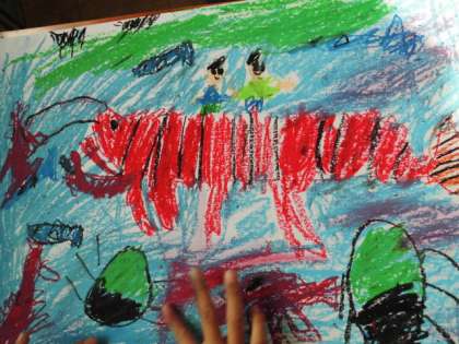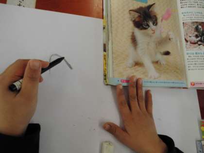 本のえをうつしたり,じゆうに かいたりして,そうぞうを ふくらませながら たのしそうに かいていました。