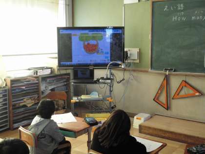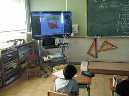 英語では,英語の歌を聞いたり,数を数えたりしています。