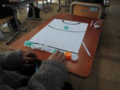 十のくらいと 一のくらいの かずを かくにんしたあと,おはじきゲームをしました。
