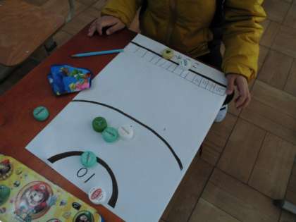 10この おはじきを ゆびではじいて,はいった かずが とくてんになります。
