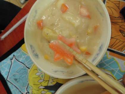 うれしそうに おはしでも しっかり もちあげて,おいしそうに たべていました。