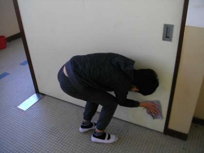 教室や廊下などを見回ってそうじするところをさがしました。どんなごみが落ちているか,どのようによごれているかを考えて効果的なそうじに取り組みました。