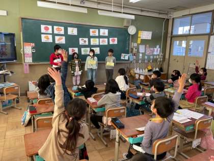 友だちとカードをかくし合って,かくれたくだものややさいは何かを当てるゲームを楽しみました。