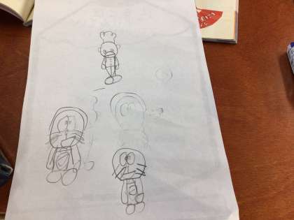 ほかにも えかきうたを しっているかきいていると いろいろなうたが でてきて,「コックさん」と「ドラえもん」の えかきうたにも チャレンジしてみました。