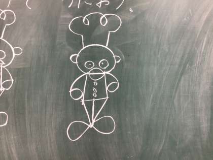音がくの学しゅうのじかんには,「さんちゃん」のうたで たぬきの えかきうたを かきました。