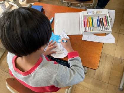 おにの形を切ったり色をぬったりしてすてきなおめんができました。