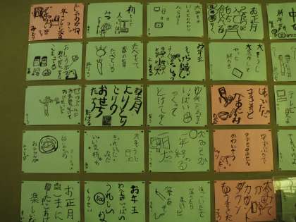 学習では,冬の季語をみんなで出し合い,その季語から俳句を作りました。