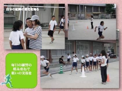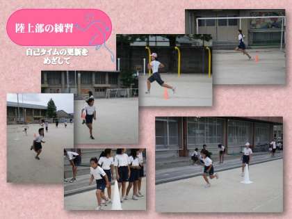 陸上部の子どもたちは,綿密な練習スケジュールに従って,一生懸命に練習を重ねています。自分の記録がどれだけ伸びるか,チャレンジ精神を忘れずに頑張っています。どんなことであっても「続けること」が大切です。
