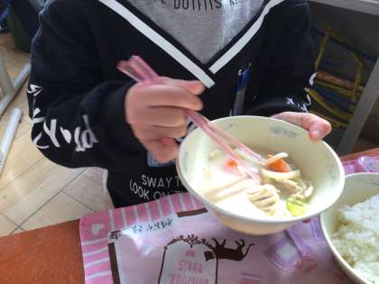 ごはんのうつわも とてもきれいに ごはんつぶをのこさずたべていて,きれいな うつわを かえしにくるすがたに たくましくなったなと かんじました。