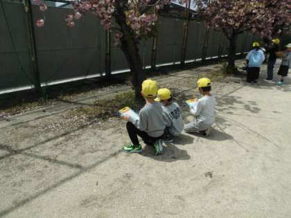 自然の観察の仕方を学習しました。運動場に出て,植物などの観察をしました。