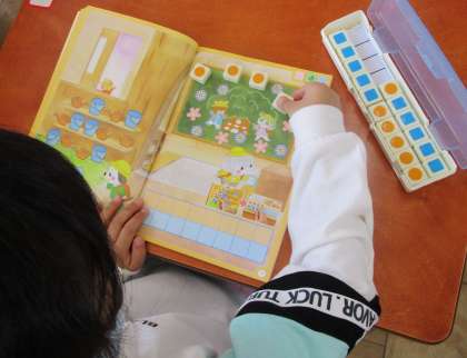 算数では絵とブロックを対応させながら,数を読む学習をしています。