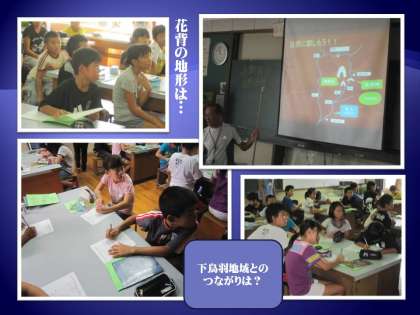 今回の活動で「川遊び」をする上桂川が,下鳥羽校区の端を流れる桂川とどのようにつながっているか,花背周辺の地形はどうなっているのか,登山をする山の高さはどれくらいか等,地形から始まり,草花などの自然の様子など,詳しく学習することができました。