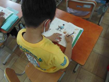 きょうかしょをひらくこと,もじをよむこと,みんなでがくしゅうをするたのしさをがくしゅうしています。