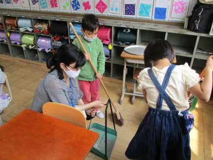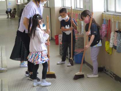 まだ短い時間ではありますが,ほうきの使い方やごみの集め方など少しずつ上手になっていってほしいと思います。
