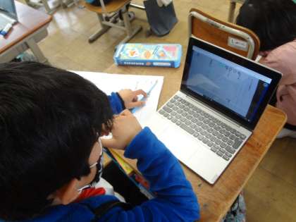 きつつきの商売は2つの場面からなるお話ですが,国語の学習で,オリジナルの3の場面を作りました。みんなが作った3の場面を交流して,おもしろいところを見つけ合いました。