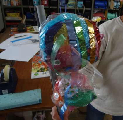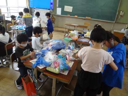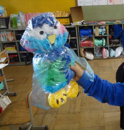 ビニール袋や色紙などを使って,立体の作品を作りました。子どもたちの自由な発想で楽しい作品がたくさん出来上がりました。