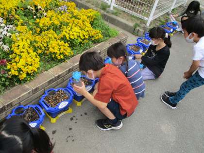 1年生 あさがおの水やり