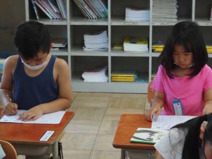 1ねんせいの ひらがなの がくしゅうのようすです。
