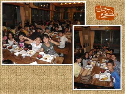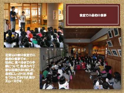 花背山の家での最初の食事です。食堂には使い方のルールがあって,それを守れば,手順よくスムーズに食事がとれます。簡単なことですが,これが徹底できないと,何かと不都合がある訳です。最初のこの時に丁寧な指導をしておこうというのが,担任の教員の考えです。どうやら子どもたちは,もうこのルールがしっかりと分かったようですね。