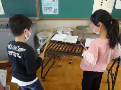 木琴を使って,音楽づくりの学習をしています。音を選んで,自分だけの音楽を作りました。