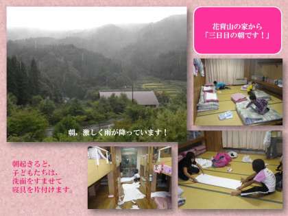 朝起きると,洗面と寝具の片づけをします。子どもたちは,とても手際よくできていましたよ。集団での生活に慣れてきました。