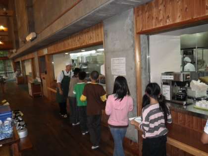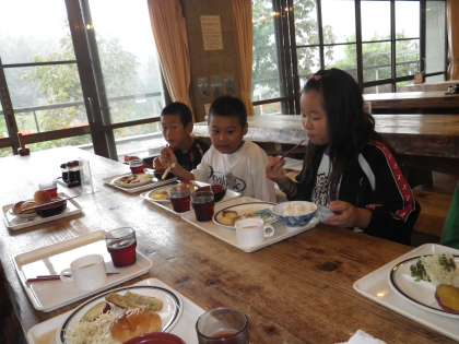 朝食の様子をもう少しお伝えします。並んで,受け取ったり皿に移したりするのも,スムーズにできるようになりました。
