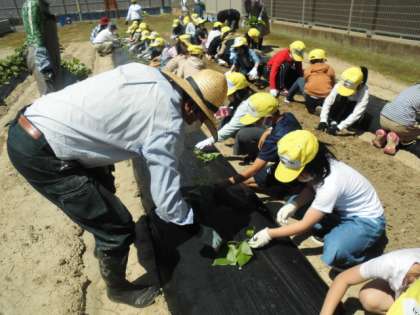 みんなで楽しく植えています。