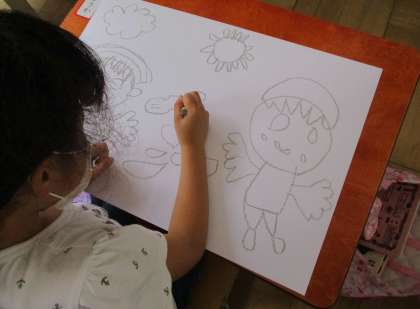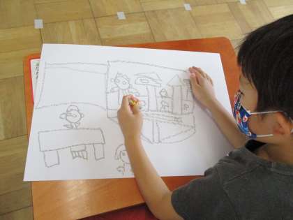 楽しかったことを思い出し,伝えたいことを絵に表しています。