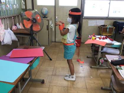 中には,どうぶつになりきっている人,だれだかわからないくらいのロボットになる人など,楽しい図工の時間でした。