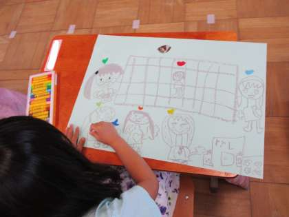 先週に引き続き,「みてみてあのね」の絵を描きました。